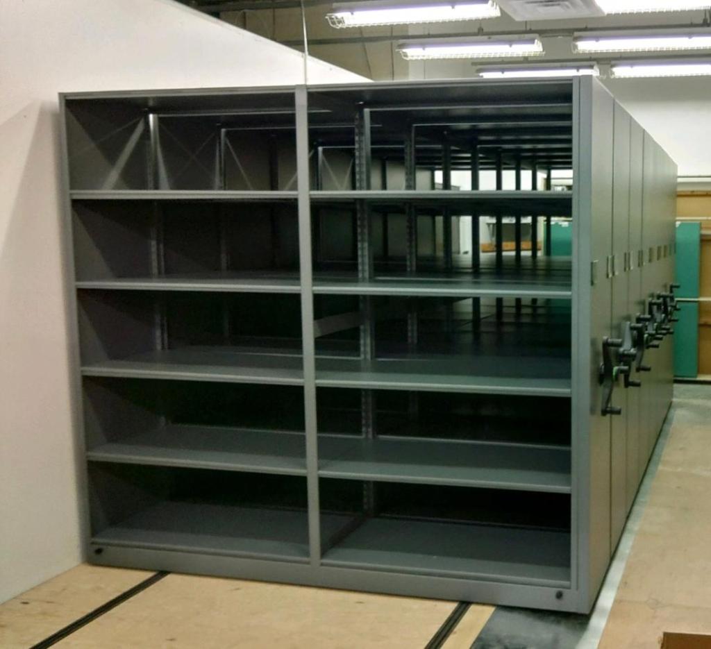 - Manual, mechanical, or powered mobile shelving